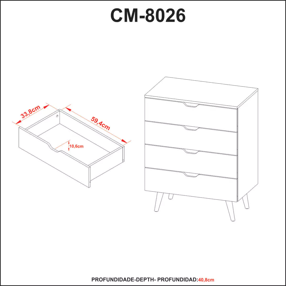 El Gavetero de 4 Cajones CM8026 de Nordic combina diseño nórdico moderno con gran capacidad de almacenamiento.