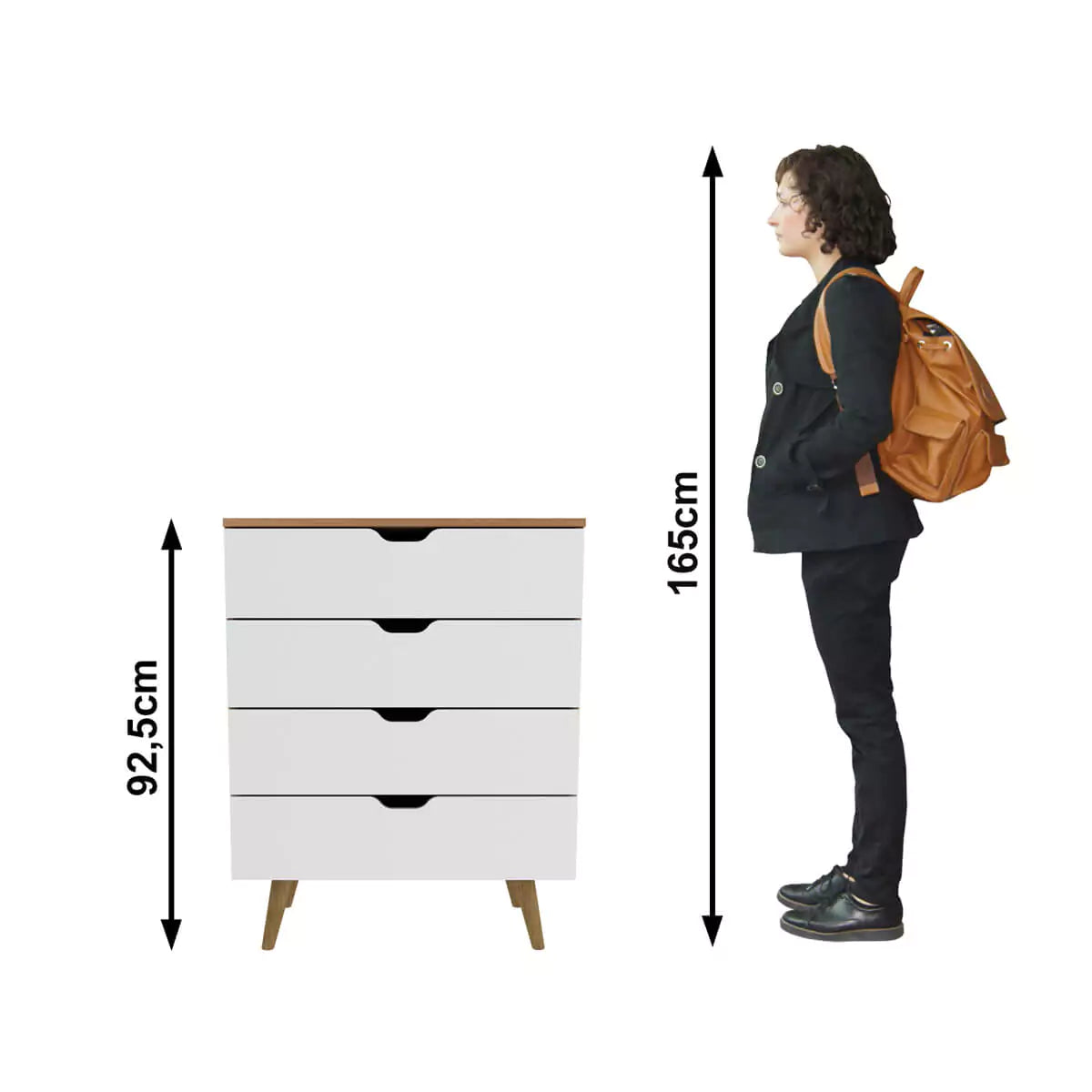 La Cómoda Nordic de 4 cajones ofrece diseño moderno y gran capacidad de almacenamiento con sus cuatro cajones amplios. Fabricada en melamina resistente, garantiza durabilidad y fácil limpieza. Su acabado en nogal con blanco aporta calidez, luminosidad y un estilo nórdico elegante a tu dormitorio.